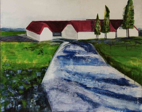 Privat |  Titel: Gård ved vej Str.: 80x100 Pris: 1000,00 |  Titel: Koen