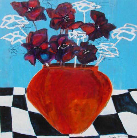 Orange krukke på tern 100 x 100 cm Privat |  Nørager skov 60 x 80 cm Pris: Kr. 2000,- |  Forelskelse - i forårsfarver 80 x 60 cm Privat |